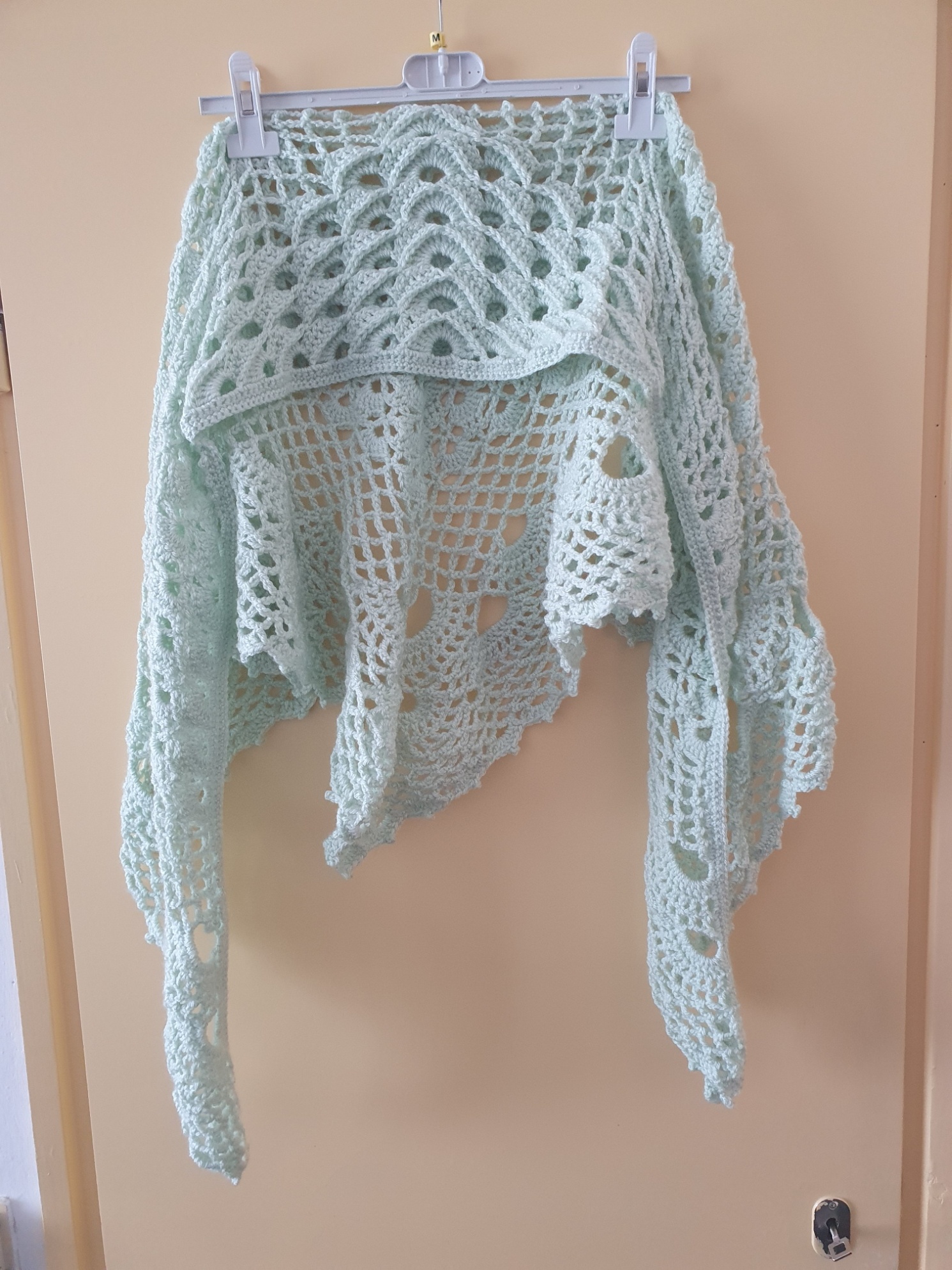 Omslagdoek zacht groen, deze in ook in andere kleuren verkrijgbaar.Indien wenselijk ook op bestelling te maken.Kan gewassen worden op 40 graden.